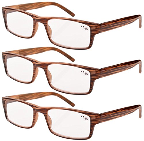 Eyekepper Spring Hinge Striped Reading Glasses (3 Pairs) Men Brown Stripe +2.75