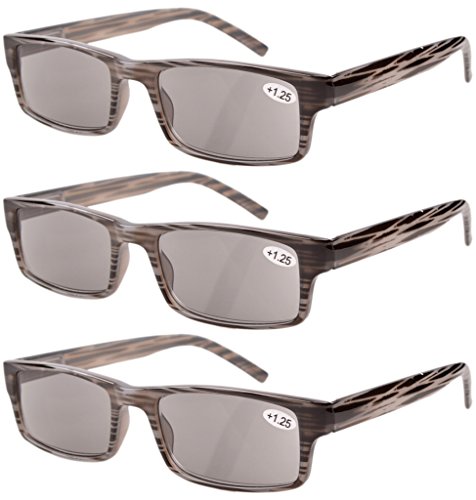 Eyekepper Spring Hinge Striped Reading Glasses (3 Pairs) Men Sun Readers Grey Lens +1.75