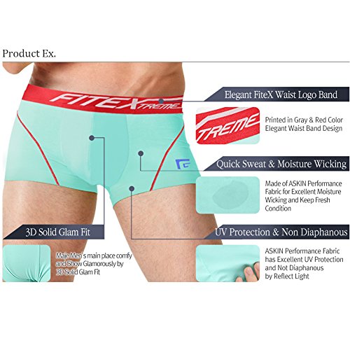 - Feature : FiteX Askin Boxer Briefs are designed to keep Cool and Fresh Condition at your Best and allow you Great Freedom of Movement during Sports and Outdoor activities / Made of Askin Performance Fabric for Excellent Moisture Wicking and Quick Dry, No ride-up leg construction, The Boxer Brief style has Shorts low-rise styling / UV Protection and Not Diaphanous by Reflecting Light, 3D Solid Glam fit show your body Glamorously / Stylish Stitch design and FiteX Logo Band on Waist, Great Fit and Can be worn all day long, Excellent Soft touch / 100% Brand New and Made in South Korea, Packed well in Indivisual Packing for Protection, Shipped via Korea Post Airmail, Delivery will take about 09 - 19 Working days (Average 15 Working days), PLEASE REFER TO IMAGE of ACTUAL MEASUREMENT on Left Side in advance of your purchase