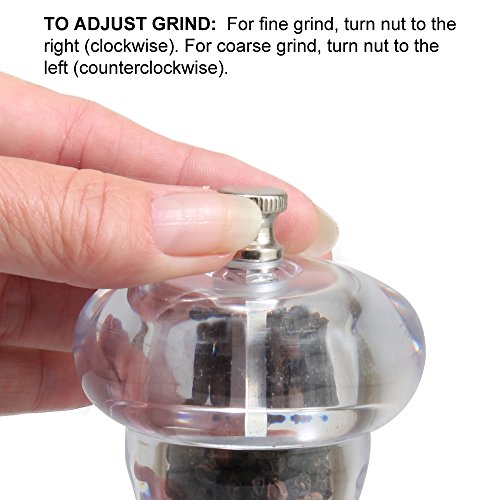 Professional quality carbon steel pepper grinder is fully adjustable from fine to coarse.