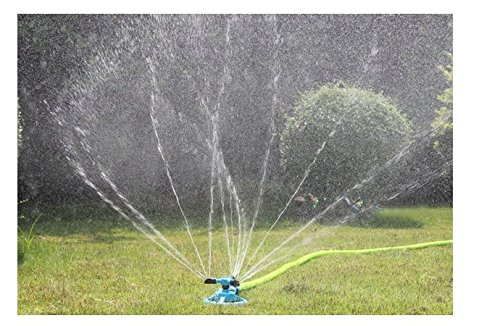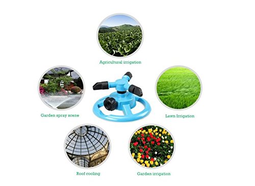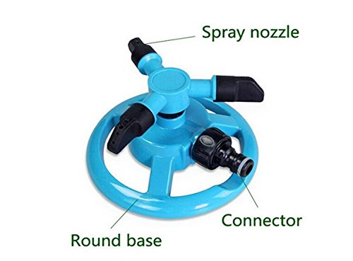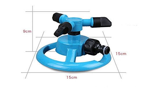 -. Feature : Round three-arm rotating sP.R.Inkler base, 360-degree rotation. / Spray distance, spray 8-10 meters in diameter. / Spray evenly, water-saving design, easy and convenient to use, gardening is a good helper. / Used for lawn, planting trees, flowerbeds, garden / Size: 15cm x 15cm x 9cm / 6" x 6" x 3.5"