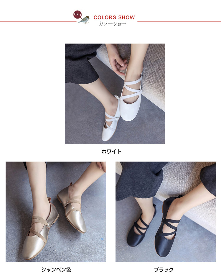 | 軽量で足によくフィットするサイコウの履き心地を追求するバレエシューズ旅行、遠足、ショッピング、長時間の歩きにピッタリの魔法のシューズがデビューしました伸縮性良いゴムストラップのため、足に馴染み、甲高の方も楽しんでいただけますラウンドトゥはゆったりとしたつま先を実現するとともに厳選された柔らかいレザーを使用するため、窮屈感なく、サイコウの履き心地◎アウトソールは凹凸加工を施したから、安全性が高くしなやかな柔軟性でしっかり歩行をサポートカカトは型崩れしないように丁寧に縫製されています | |