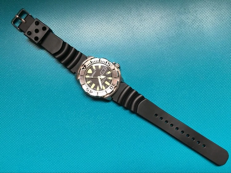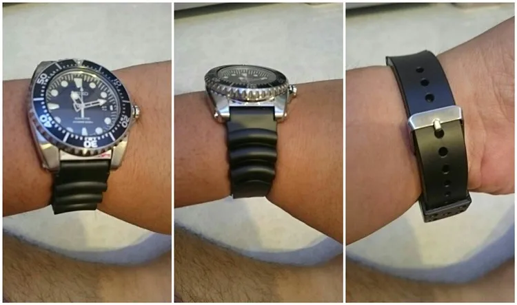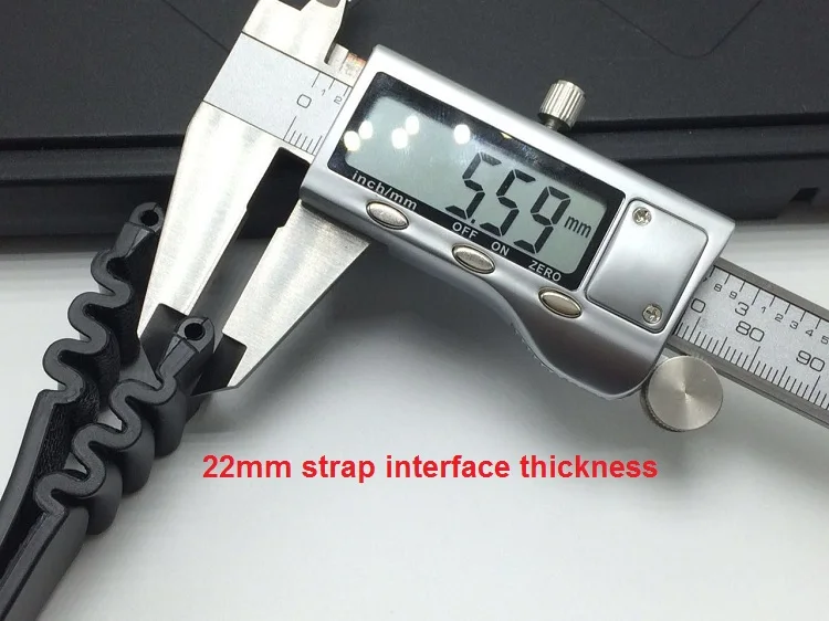 크기 18 미리메터 20 미리메터 22 미리메터 색상 블랙 소재 PU/고무 20 미리메터 스트랩 크기 140 미리메터/80 미리메터 맞는 SKXA53/55, SKX007/009/171/173 22 미리메터 스트랩 크기 145 미리메터/85 미리메터 맞는 SKX779/781 버클 스테인레스 스틸 구매자 입고 효과: