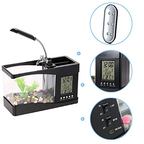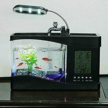 Docooler USB Desktop Mini Fish Tank Aquarium with LED Clock