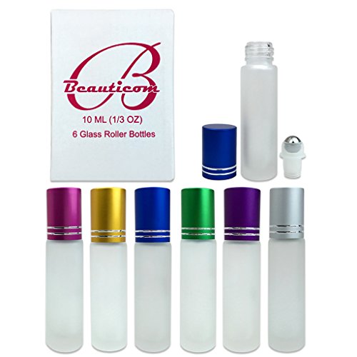 Beauticom® (Quantity: 6 Bottles, MIX Color) Glass Roll on Bottle 10ml ~ 1/3 oz with Metal Cap, Stainless Steel Roll Balls for Essential Oil, Aromatherapy,...
