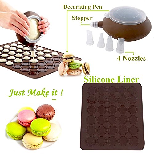 This flexible and non-stick backing mat made of high-quality silicone provides very easy baking enjoyment. The precise fit allows you to make elegant and uniform macaroons, double biscuits and many other treats. Be creative. Material: Silicone Colors: Brown Mat size:38.5 * 28cm; Small circle diameter: 2.8cm; Large circle diameter: 3.8cm; Decorating Pen Size: 11 * 5CM; Volume: around 200ml Box contents: 1 x silicone baking mat 1 x decorating pen icing tips 1 x 4 nozzles, 1 stopper 0 |