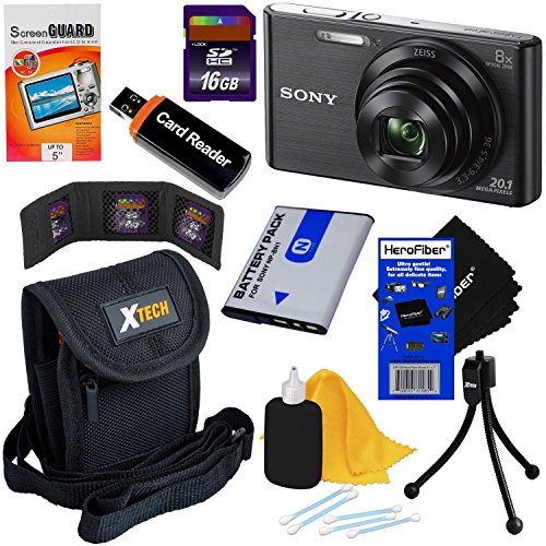 Sony Cyber-shot DSC-W830 20.1 MP Digital Camera with 8x Zoom & Full HD 720p Video (Black) - International Version + NP-BN1 Battery + 8pc 16GB Accessory Kit w/ HeroFiber Ultra Gentle Cleaning Cloth