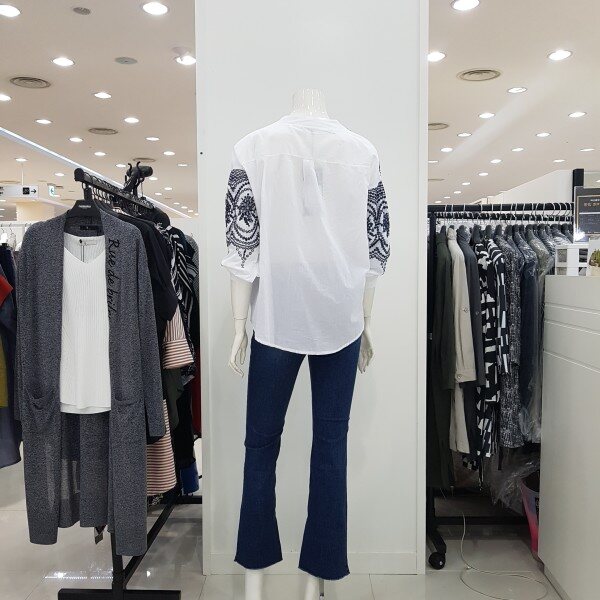 여성스러운 자수 포인트로 세련되게 입기 좋은 블라우스 입니다 깔끔한 라운드에 브이넥 트임을 주어 시원하게 보이도록 디자인 하였고 7부 기장의 소매로 여름에 입기 좋은 스타일 입니다 여유있는 실루엣과 루즈한 핏으로 캐주얼 팬츠와 코디하기 좋습니다