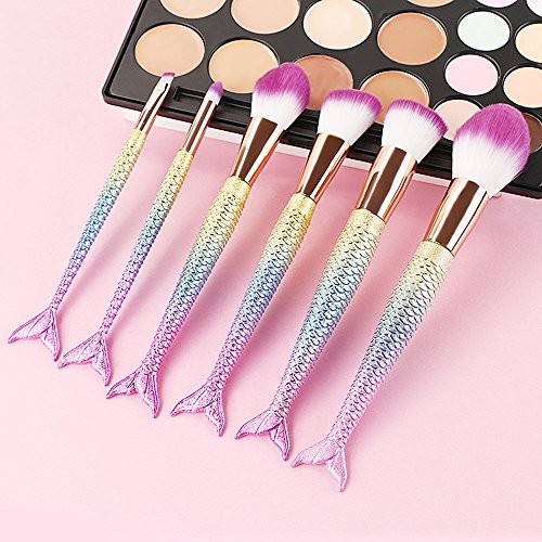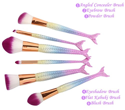 6 Pieces Mermaid Makeup Brush Set Lovely Makeup Brush Kit for Girls Portable Beauty Cosmetic Tools Women Cosmetic Concealer Brush
