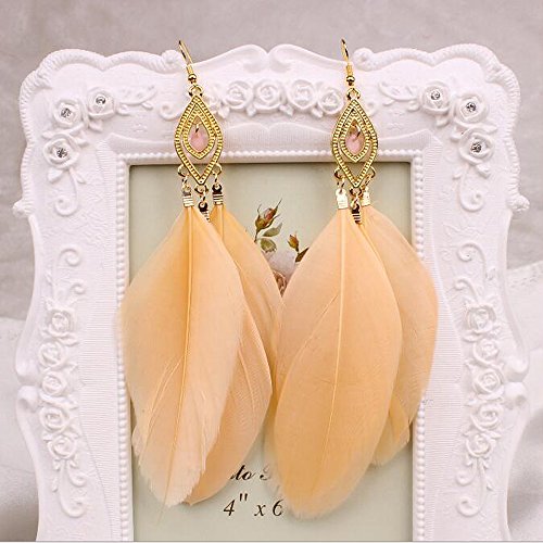 A&C Fashion Bohemia Champagne Feather Dangle Earrings Jewelry for Women, Hot Sell Indiana Feather Eardrop for Girls.