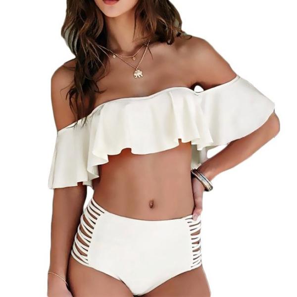 日焼けを気にせず今年は思いっきり海やプール、海水浴、バカンスを楽しみたい女性にオススメのオフショルダーバンドゥビキニの上下セット(セットアップ)です!水着ブラにはフリルデザインで、動きが出やすくボリューム感も出るためバストアップ効果!ショーツは少しハイウエスト仕様となっており体型カバーができ、美脚に見えやすくサイドウエストの紐ラインのデザインもセクシーでおしゃれです彼女さんや娘さん、奥さんへのプレゼントや贈り物にも最適。サイズ : S・MSサイズ バスト 78 - 83cmウエスト 60 - 65cmヒップ 83 - 88cm Mサイズ バスト 83 - 88cmウエスト 65 - 70cmヒップ 88 - 93cm検索キーワードヴィクトリアシークレット ネイティヴ ネイティブ オルテガ ブラジリアン ハワイ ボヘミアン surf サーフ beach ビーチ オフショル ホルターネック セットアップ ビキニ セパレート ビスチェ タンキニ 水着