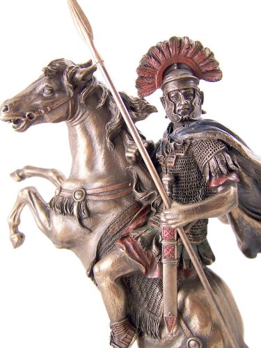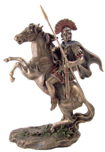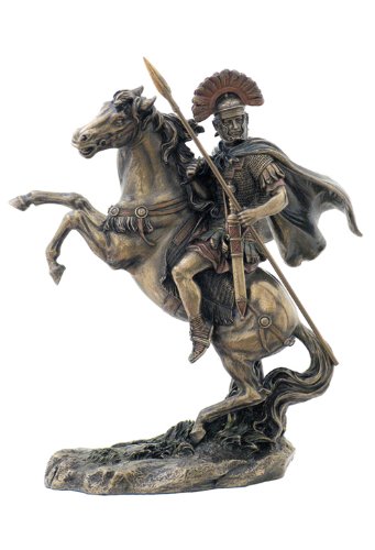 Roman Army Officer Centurion with Galea Helmet and Spear on Horseback 10 3/8 Inch Bronze Statue