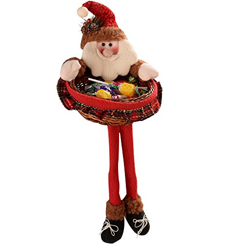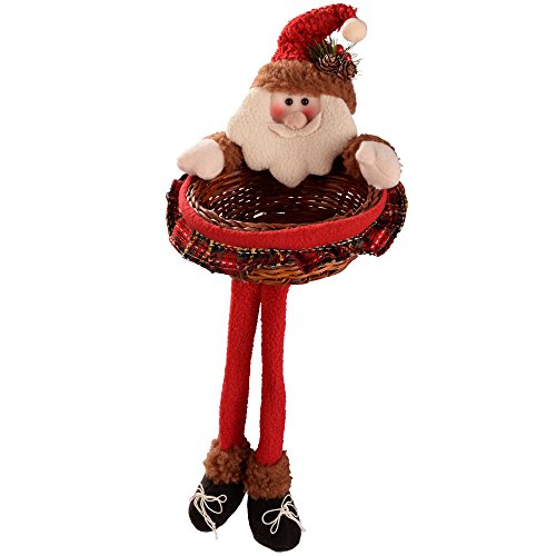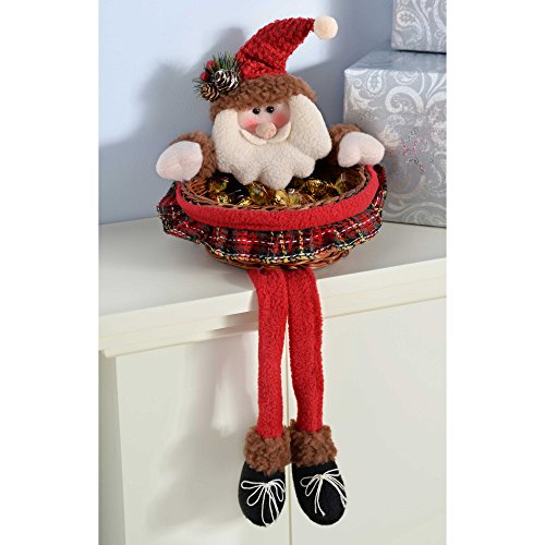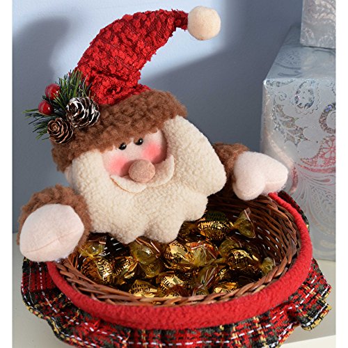 WeRChristmas 45 Cm Father Santa Claus Nuts Treats Sweets Christmas Wicker Basket Table Decoration In Red And Green Tartan