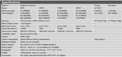 Ruby Electronics DT-6605 Digital Insulation Tester MegOhmMeter CAT IV 5000V 60 Giga Ohm Meter