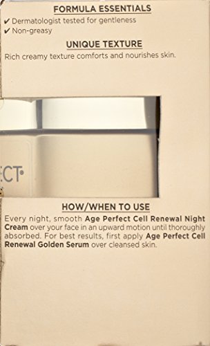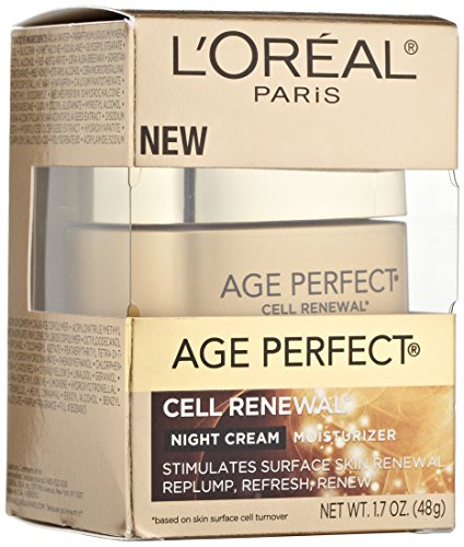 -. Binding : Health and Beauty -. Brand : L'Oreal Paris -. Color : Night Cream -. EAN : 0071249279366 -. Feature : Night cream speeds surface skin cell renewal for fresher, more youthful looking skin / Formulated with LHA to help stimulate surface skin cell renewal and Natecium DHC, a powerful anti-oxidant, to help protect from free radicals / Instantly skin feels nourished and supple, and in 1 month skin appears renewed, feels firmer, and more dense / Dermatologist tested for gentleness, non-greasy -. Label : L'Oreal Paris -. Manufacturer : L'Oreal Paris -. Model : K1695700 -. MPN : K1695700 -. NumberOfItems : 1 -. PackageQuantity : 1 -. PartNumber : K1695700 -. ProductGroup : Beauty -. ProductTypeName : BEAUTY -. PublicationDate : 2014-08-02 -. Publisher : L'Oreal Paris -. ReleaseDate : 2014-06-01 -. Size : 1.7 OZ -. Studio : L'Oreal Paris -. Title : L'Oreal Paris Age Perfect Cell Renewal Night Cream, 1.7 Ounce -. UPC : 071249279366