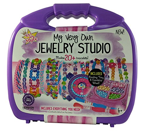 - Girls jewelry making studio set comes in pink or purple carrying case