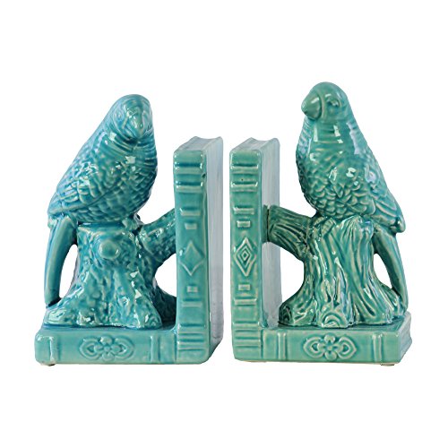 Benzara Parakeet on a Tree Branch Bookend on Base, Blue