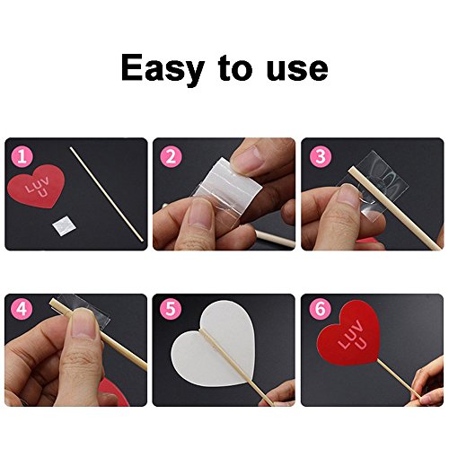 Quick and easy to use: simply attach the included bamboo dowels to each card stock prop image using the provided clear stickers. Then hold the prop in front of your face, over your head, etc.