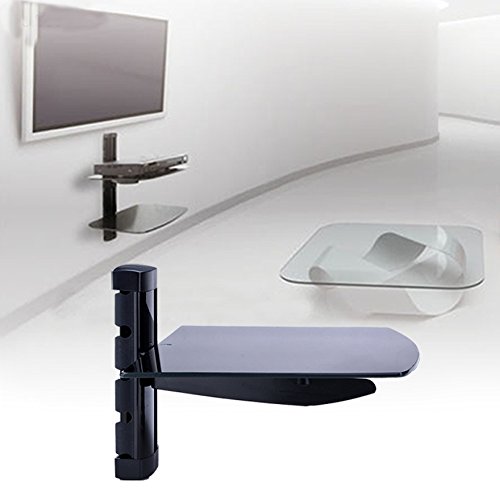 -. Binding : Electronics -. Brand : Cosway -. EAN : 0763310036755 -. Feature : Cable management system is included to help give your installation a cleaner more professional look. / The height of the shelves is adjustable. It provides an option to move shelves up and down depending on the units dimensions. / his item comes with one durable tempered glass shelves that can hold up to 17.6 lbs each. / Simply mount this wall mount shelf system under your TV. / Package Content:1 x Glass, 1 x Holder, 1 x One Set Installation Accessories. -. Label : Cosway -. Manufacturer : Cosway -. PackageQuantity : 1 -. ProductGroup : Speakers -. ProductTypeName : AV_FURNITURE -. Publisher : Cosway -. Studio : Cosway -. Title : 1 Tier Glass Shelf TV Wall Mount Bracket Low Profile Fixed Under Component Cable Box DVR DVD -. UPC : 763310036755