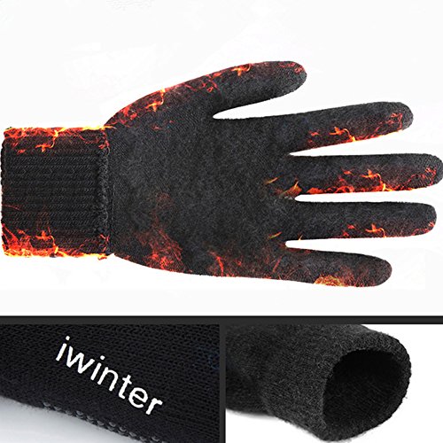 1. Material: Made of wool knitting and flannel inside, which keep your hands warm in cold weather. There is just one size,but it fits most. 2. Color: The golve design for unisex.There are five colors black, coffee, black-white, coffee-white, grey for men.Five colors black, coffee, black-white, coffee-white, rose for women. It is a good choose for couples to go outdoor activities. 3. Touchscreen Design: Works well on all Smartphones and Tablets. It doesn't need to take off the gloves when you send messages. 4. Multi-Function: Protect your chilly hands when texting, typing, writing and daily activities in freezing winter.