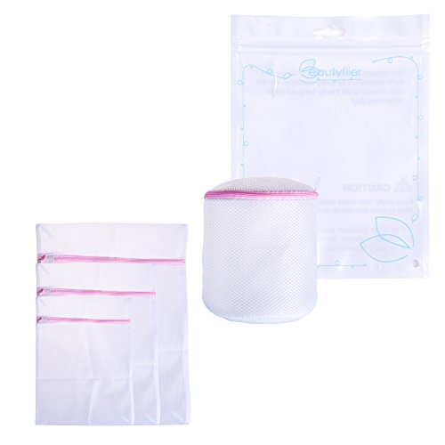 Beautyflier 4 Pieces Zipper Mesh Washing Laundry Bag for Woman Wash Bag Underwear Bras Lingerie Garment Bag Travel Laundry Bag Wash Machine Bag