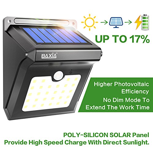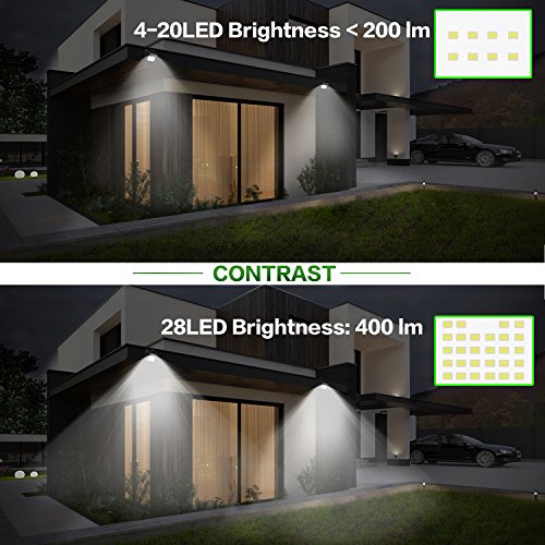 ☀ 【28 LED Ultra-Bright Solar Light】There are 28 powerful LEDs and the motion angle is 120º which can provide excellent illumination and turn the dark space into a bright lighted space. With a lampshade covering the led, well designed to longer its performance life