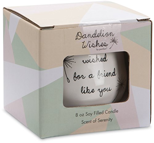 Pavilion Gift Company 77114 Plain Dandelion Wishes - I Always Wished for A Friend Like You White Ceramic Soy Serenity Scented Candle,