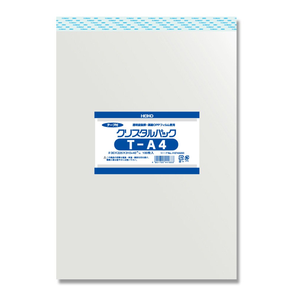 透明度と強度に優れたポリプロピレン製の「クリスタルパック」。 テープ付で封ができるタイプ。たっぷり使える大容量。 【サイズ】幅225×高さ310+テープ部分40mm 【入数】100枚 【材質】OPP0.03mm厚