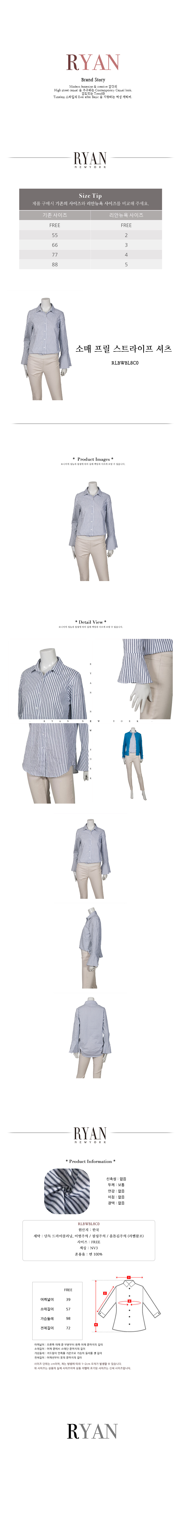 선택01.소매 프릴 스트라이프 블라우스 RLBWBL8C