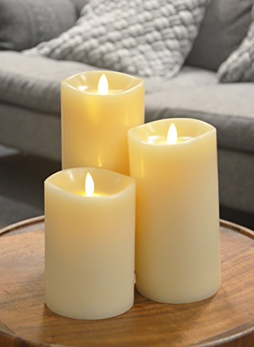 Electronic Melted Edge wax pillar candles with a realistic flame effect that mimics the flickering and swaying movements of a real flame.