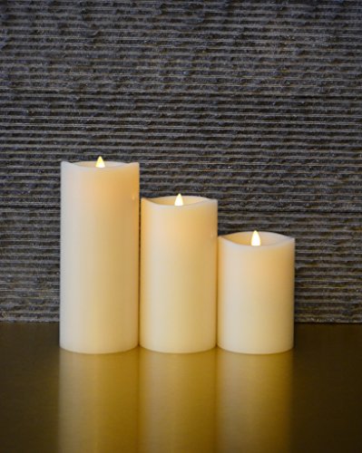 7" Blow On & Off Melted Edge Flameless Electronic Wax Pillar Candles By Muse Alight. Battery Operated with Timer Feature. Ivory, Vanilla Scented. Remote Control Included (Melted Edge 3.5"x7", Ivory)