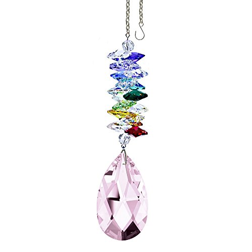 -. Title : Swarovski crystal 5" Tall Pink 2" Almond P.R.Ism & Multicolored Cascade Crystal Ornament, Rainbow Maker, Sun Catcher, Striking Decorative Element Adorned with Swarovski crystal with Certificate
