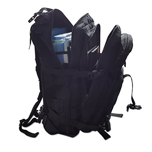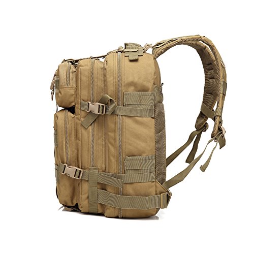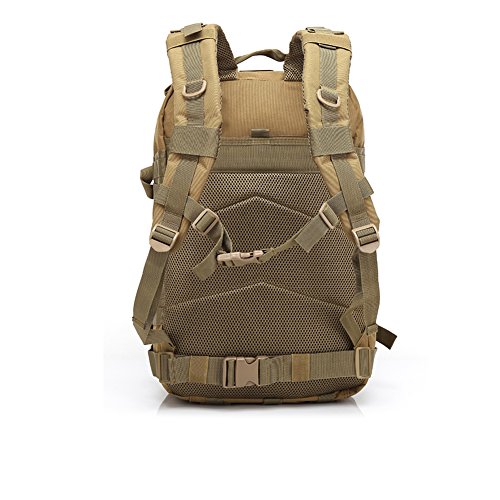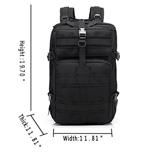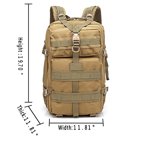 -. Feature : Made of durable 600D nylon oxford cloth with a water-repellant coating. The Military Tactical Backpack has durable construction with Heavy-Duty Waterresistant Nylon pack cloth construction and heavy-duty oversized zippers for extra durability. / 45 L;1.5 Inch Waist Belt, 1 Inch Sternum Strap, padded and adjustable shoulder straps help relieve pressure on shoulders while carrying heavy loads. / It has spacious main compartment with zip around closure, interior zip pocket and mesh pocket. A roomy main storage area, front storage zip compartments, Padded and breathable mesh back panel and shoulder, Side compression straps. / Two Spacious compartments with small pouches inside and two front pockets, the Rucksacks Tactical Backpack is ready to meet your needs. / We offer one year warranty; we want to know if there are any concerns or questions; please contact us as we stand behind our products;