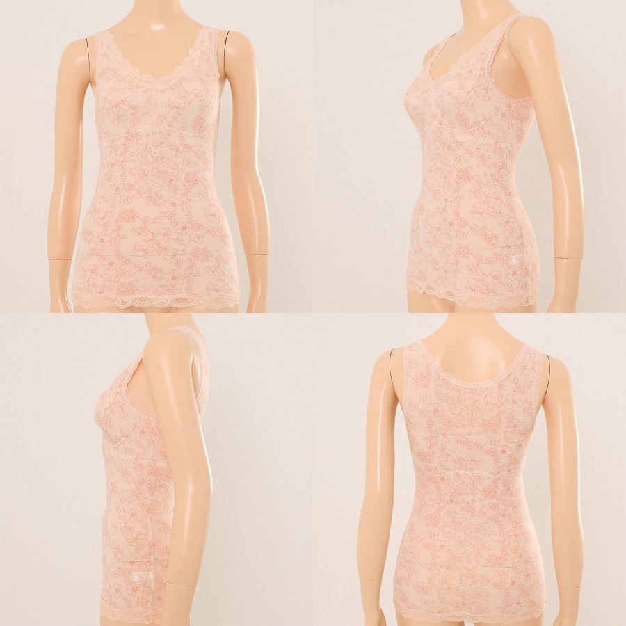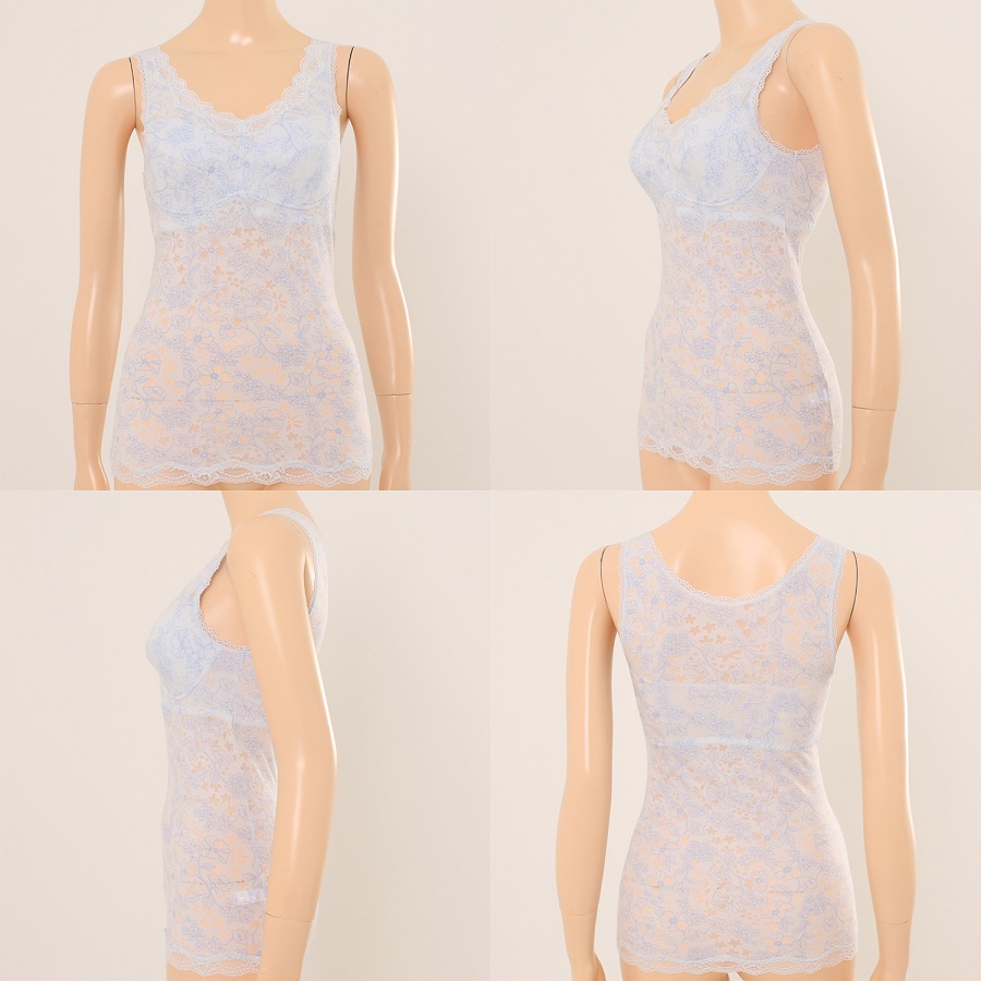하단에는 소폭레이스를 달아 여성적인 감각을 살리면서 제품 하단이 올라가는 것을 방지하였다.