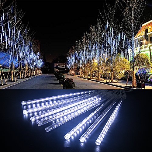 LED Meteor Shower Rain Lights, Ashine Falling Rain Drop Christmas Lights with 30cm 8 Tube 144 LEDs, Icicle Snow Fall String LED Cascading Lights for Wedding, Party & Xmas Decoration (White)