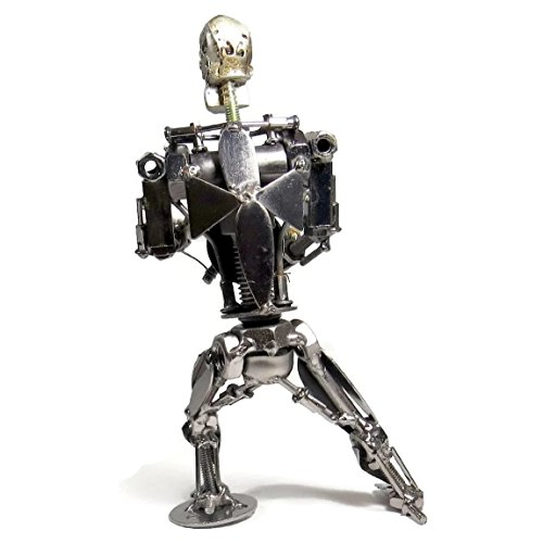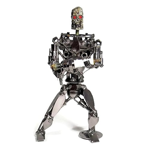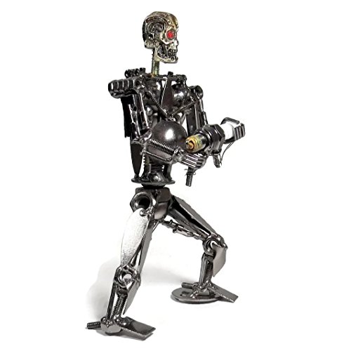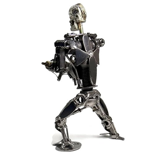 8.0 Inch Metal Terminator Robot Sculpture - Recycled Metal Art Sculpture Skull Head Statue Office Decor