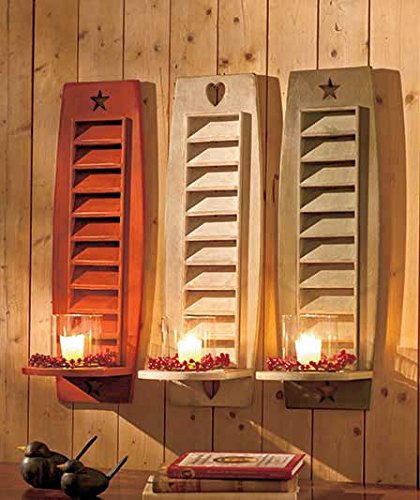 - Title : 22" Rustic Country Barn Red Shutter Candle Sconce Holder Berries Wreath Star Shabby Chic Farmhouse Primitive Wall Decor
