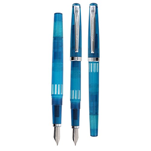 -. Feature : Genuine Noodlers Branded Quality / Stainless Steel Flex Nib Fountain Pen / Clear Blue Body & Cap / Piston Filling System for Bottled Ink / Windowed Ink Compartment - Celluloid Fountain Pen