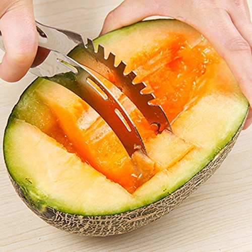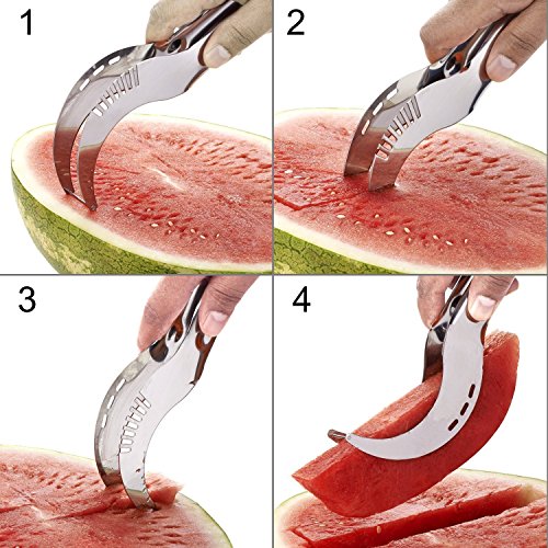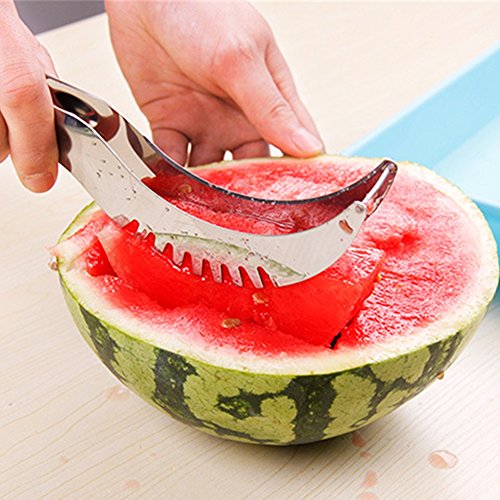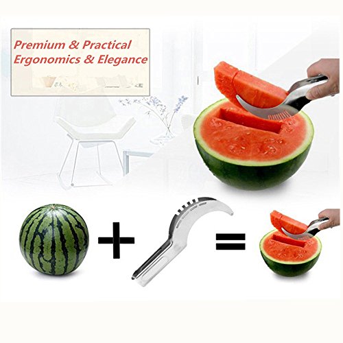 This watermelon knife is the best and top rated kitchen knife with the most positive and highest reviews. This watermelon knife makes preparing for birthday parties, home cooking recipes, smoothies, diced fruits, corporate events, baby showers, lunches, meal planning, salads, and teats a convenient process. Slice, dice fruit, make watermelon slices easy and quickly! Easy clean up with no mess, save time with this heavy duty watermelon knife. Remove the entire core with this watermelon corer to make stuffed watermelon and surprise all the party guests, chefs, neighbors, children, fitness experts, nutrition helpers, and diet makers at your next event. *MULTI-USE - The WHome Watermelon Slicer can be used on watermelons, honeydew, melons and cantaloupe melon. *NEW STATE OF THE ART DESIGN :Really easy to use. Dishwasher safe, .The watermelon slicer is the perfect gifts for family, friends, co-workers, and just about anyone else you can think of. *CHILD-FRIENDLY Rounded edges make 0