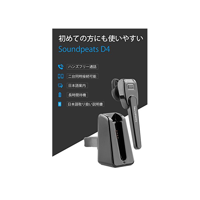 원본상품명: SoundPEATS 【メカ直販/1年保付】 Bluetooth 片耳 イヤホン 片耳 ワイヤレス ヘッドセット 高音質 小型量 防水 防滴 マイク Bluetooth イヤホン D4