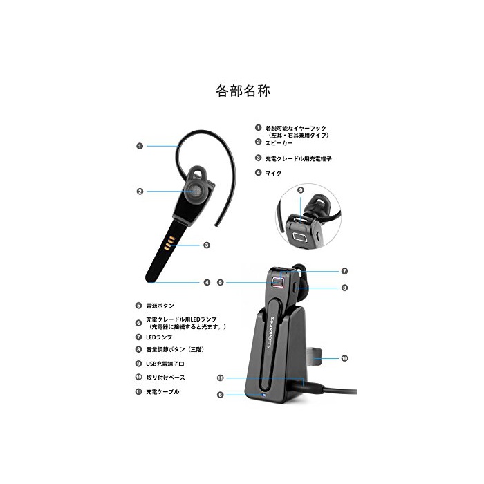 이어 젤에 딱딱하 #의 고무를 사용하고 있고 제대로 귀로 피트 하고, 매우 쾌적하게 장착에 옵니다.부속 이어 훅은 붙을 수 없어도 사용 할 수 있습니다만,붙여 사용하면 귀부터 빠짐지 않고 안심하고 사용 할 수 있기 때문에 꼭 시험해 주십시오.또한확실히 하고 있는 세미 하드 케이스가 부속하기 때문에 가방에 넣고 운반할 때도 편리합니다.【대용량 배터리】1회 약1시간의 충전으로 연속 수신대기 약30일간,연속 통화/음악 재생 약4시간을 실현.(※전원 입력:DC 5V / 1A,안전 때문에,1A를 초월하지 말아 주십시오)【안심 메이커1년간 보증】만일 상품에 불편이 있는 경우는,폐사에 연락 해 주시면 일본어 스탭이 신속하게 대응 하겠습니다.구입 후30일간은 원칙 반품 환불 대응 합니다.고객 사정 에서의 반품 환불도 가능합니다.또한구입 후12개월의 메이커 보증이 붙고 있고, 아마존의 구입 이력 보다 폐사로 연락 하십시오.