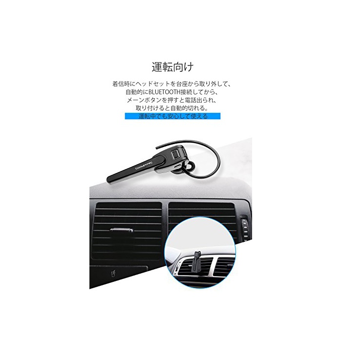 버튼이 하나밖에 없고, 또한 cradle로 접속해 사용하는 타입 를 위해,안전 운전을 최대한으로 서포트로 옵니다.미리Bluetooth디바이스와 페어 링해두면,충전 cradle부터 제외하면 자동으로 전원 온이 되고, 통화 버튼을 것만으로 곧바로 전화에 나갈 수 있기 때문에,운전중에서도 최소한의 동작에서 이 끝난 상태,안전 운전에 공헌합니다.cradle로 되돌리면 전원OFF와 동시에 충전되기 때문에 밧데리토막 심장배도 없습니다.게다가차의 에어콘 통풍구의 fin에 cradle를 고정할 수 있는 바와 같이(하도록) 클립이 부속 하고 있기 때문에,일본의 모든 드라이버를 응원하는 헤드 세트입니다!