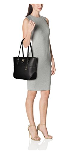 New tote with color block details and full top zipper and full slip pocket for easy access, interior organization