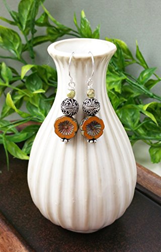 -. Title : 1 Pair of Autumn Golden Sunflower Harvest Earrings Glass Bali Sterling Silver