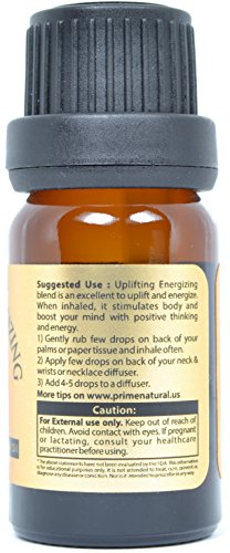 -. Title : Uplifting Energizing Essential Oil Blend 10ml - 100% Natural Pure Undiluted Therapeutic Grade for Aromatherapy, Scents & Diffuser - Motivation, Purification, Stimulation, Mental Alertness