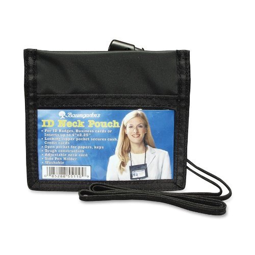BAUMGARTENS ID Neck Pouch, Horizontal, Adjustable 42-Inch Cord, 3.5 x 2.25 Inches, Black (BAU55110)
