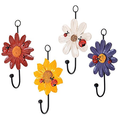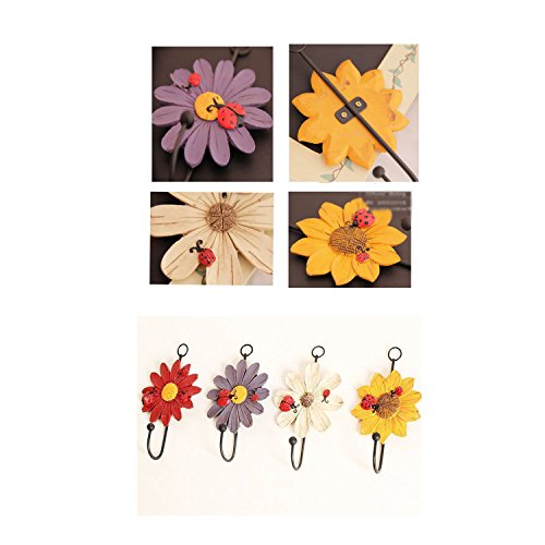 USUNQE Set of 4 Flower Design Key Hat Towel Art Hooks, Home Decorative Wall Hanger