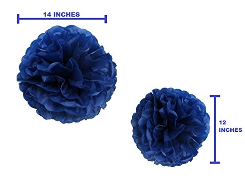 - PACK INCLUDES: 8 pieces of navy blue tissue paper flower pom pom balls. 4 balls of each size, ( 4x12" and 4x14" ). Each paper ball comes separately packed so you can use as much as you want and the rest you can storage for later use.