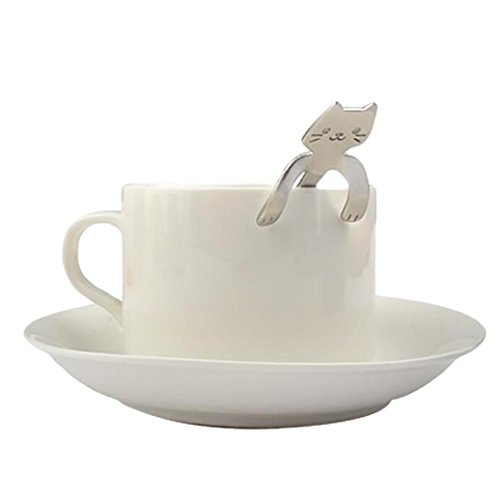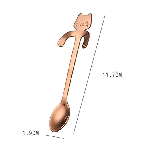 -. Feature : Food grade 304 stainless steel material, rust free and have a long lasting use, keep safe and health. / Cute cat style, easily matches with existing flatware.Color:Gold,Rose Gold,multicolour,Black Size:11.7*1.9cm / Use for coffee, tea, dessert, appetizers, every-day durability with lasting luster. / Two "hands" on the handle, they can hang the spoon on the rim of the cup.Material:stainless steel Easy to clean / Easy to clean, the smooth polished edge will not cut your skin, dishwasher safe.