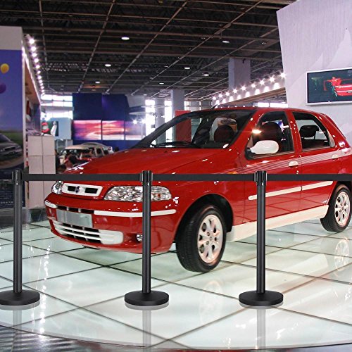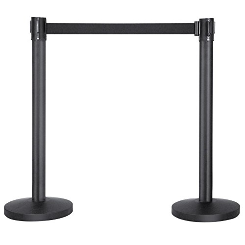 Yaheetech Stanchions Set Queue Line Post Barrier with 6.5' Retractable Belt, Crowd Control Stanchions,Black